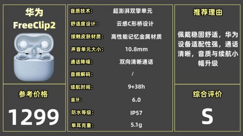 推荐理由:佩戴稳固舒适,华为设备适配性强,通话清晰,音质与续航小幅升级