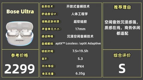 推荐理由:空间音效沉浸感强,质感在线,商务休闲都适配