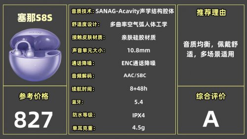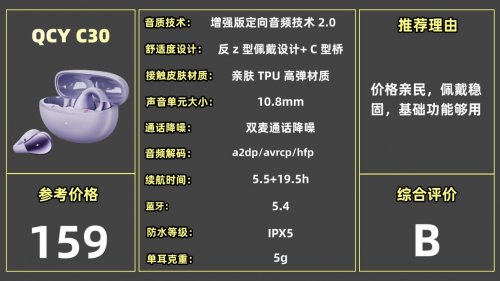 推荐理由:佩戴稳固,中高频表现不错,日常场景适配性强