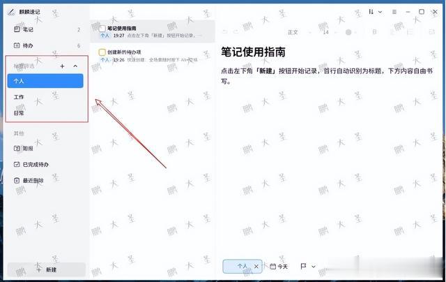 通过标签对笔记分类(如“会议记录”“灵感创意”)