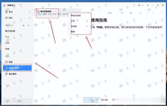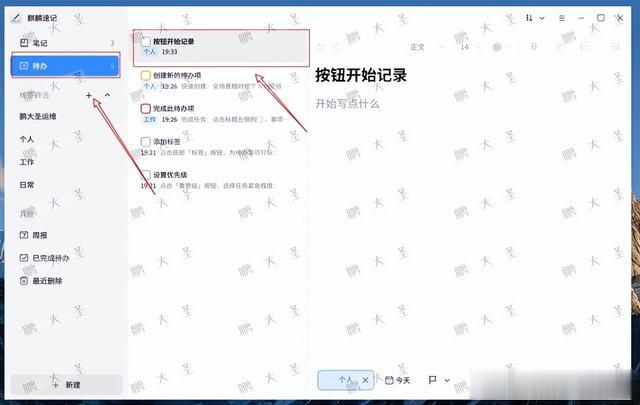 麒麟速记是一款集快速记录、待办管理于一体的信息管理工具。核心功能包括: