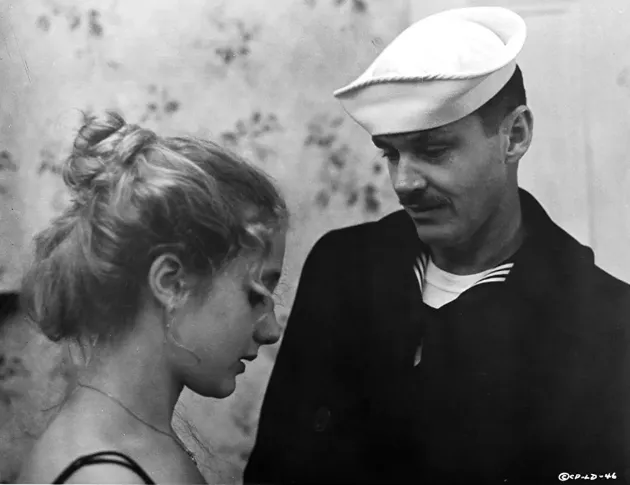 年轻人因为一次偷窃却获得了远远超出正常刑法范围内的惩罚,虽然影片没有将矛头指向美越战争,但我们却依旧是可以从他们的对话中找到蛛丝马迹。影片快结束的时候,当两个水兵带着年轻人去寻欢作乐的时候,其中一个应召女郎便开始了发问,虽然问题没有得到回答,但这种沉默的回应正是美越战争带给水兵们的一种阴影。