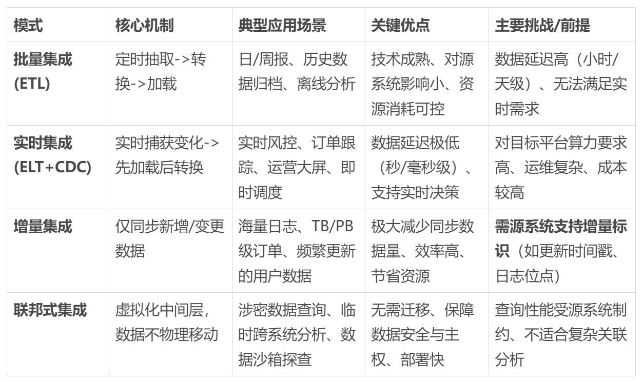 数据集成不是一刀切,4种常用模式对应不同场景,直接对号入座: