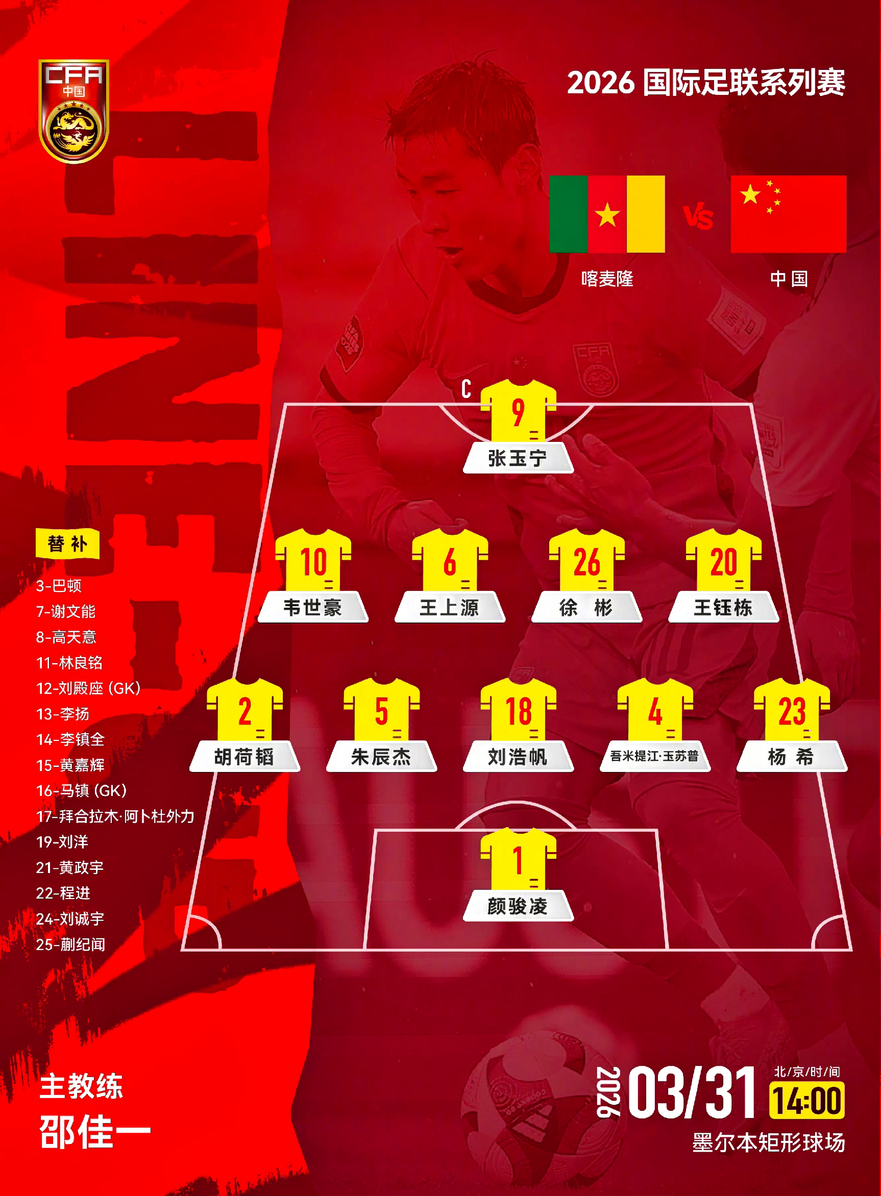 从541到442,邵佳一尝试两套不同阵型相较于上一场2-0击败库拉索队的首发阵容,本场比赛主教练邵佳一进行了2个位置的人员调整,喜胡荷韬和吾米提江顶替刘洋与谢文能首发,国足的阵型也从上一场的442,调整为开场阶段的541阵型。