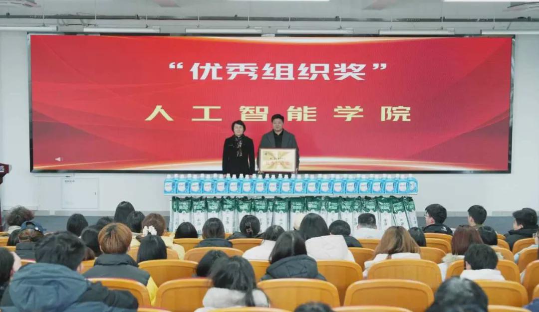 大会采取沉浸式方式,播放了公寓文化节精彩瞬间回顾视频。镜头下,同学们在各类活动中展现出的青春活力、协作精神与创意才华一一呈现,师生们重温了近一个月来公寓文化节的欢乐与感动,引发强烈共鸣。学生处负责人牛帅宣读了《信阳科技职业学院关于表彰第二届“公寓文化节”活动获奖宿舍及优秀组织单位的决定》,其中,人工智能学院因组织工作表现突出,获评优秀组织单位。在热烈的掌声中,与会领导为获奖宿舍和优秀组织单位代表进行了颁奖。