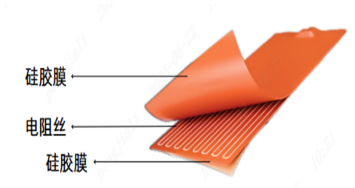 硅胶加热片的核心组成部分包括硅橡胶基材、金属发热丝、绝缘层,有的还有温度传感器。