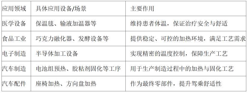 在医学设备领域,它们被用于保温毯、输液加温器等设备,维持患者体温。