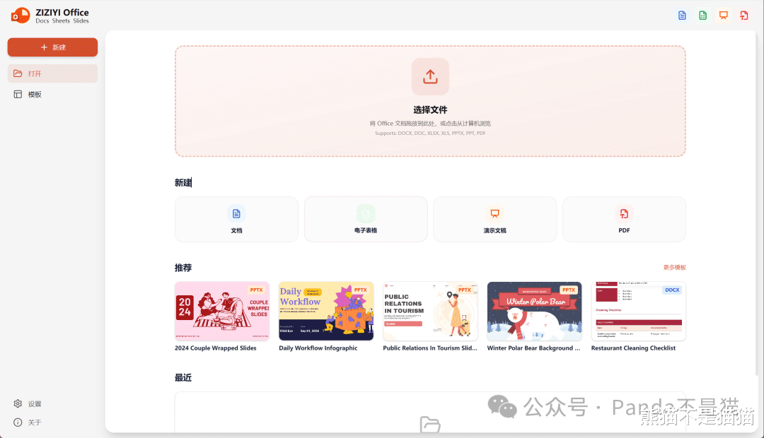 功能体验通过Web直接访问就能看到项目的主界面了,目前的文件支持上文档、表格、PPT以及PDF都有,基本上满足了工作与学习场景的大部分文件格式了。