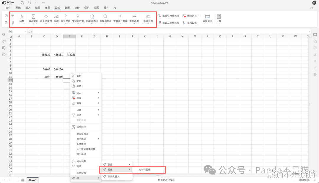 表格编辑也没问题,整个界面和本地office没有区别,唯一的区别就是在表格中新增了AI文字转图像的功能。
