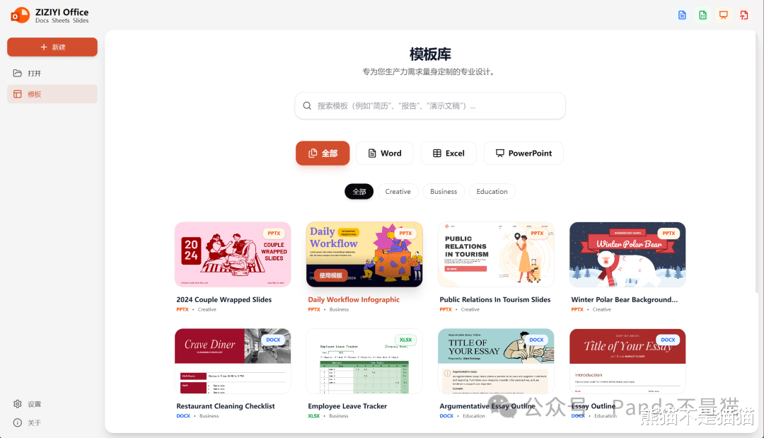 除了支持在线的文档创建,项目也提供了一些模版供直接使用,虽说模版的数量并不算多,但胜在各个类型都有,且这些模版都是免费使用,不需要开什么会员。