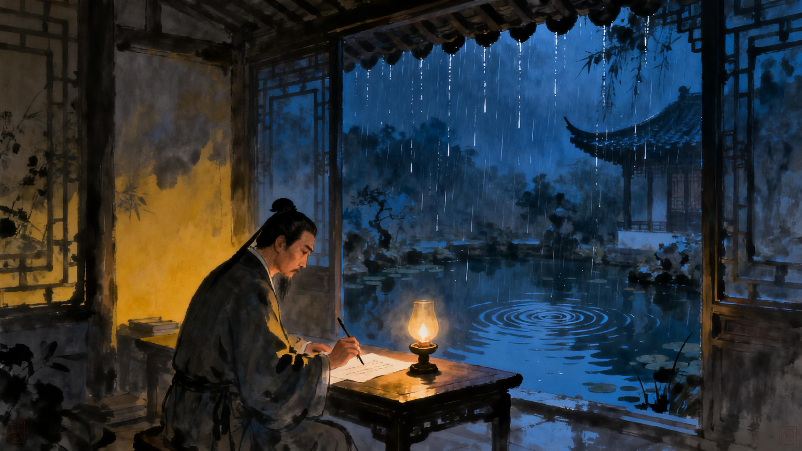 公元851年秋,李商隐身处巴蜀之地,收到了一封来自北方的信。信中是妻子王氏温柔的询问:何时归来?他握着信纸,窗外秋雨绵绵,池水渐涨,却不知归期在何日。