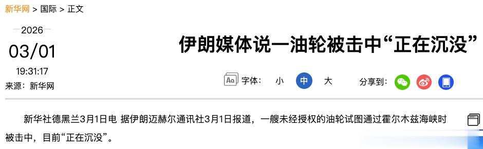 根据最新的报道,一艘名为天光号SKYLIGHT的油轮在霍尔木兹海峡被袭击,20名船员已经撤离,船只正在缓慢沉默中,救不回来了。