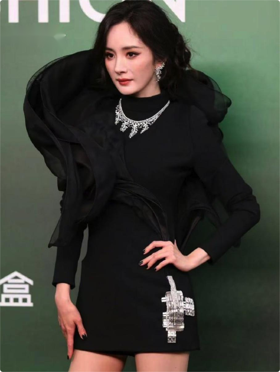 李沁这次彻底摆脱“甜美”路线,身穿贴身黑色鱼尾礼服勾勒出流畅的曲线,干净又利落。