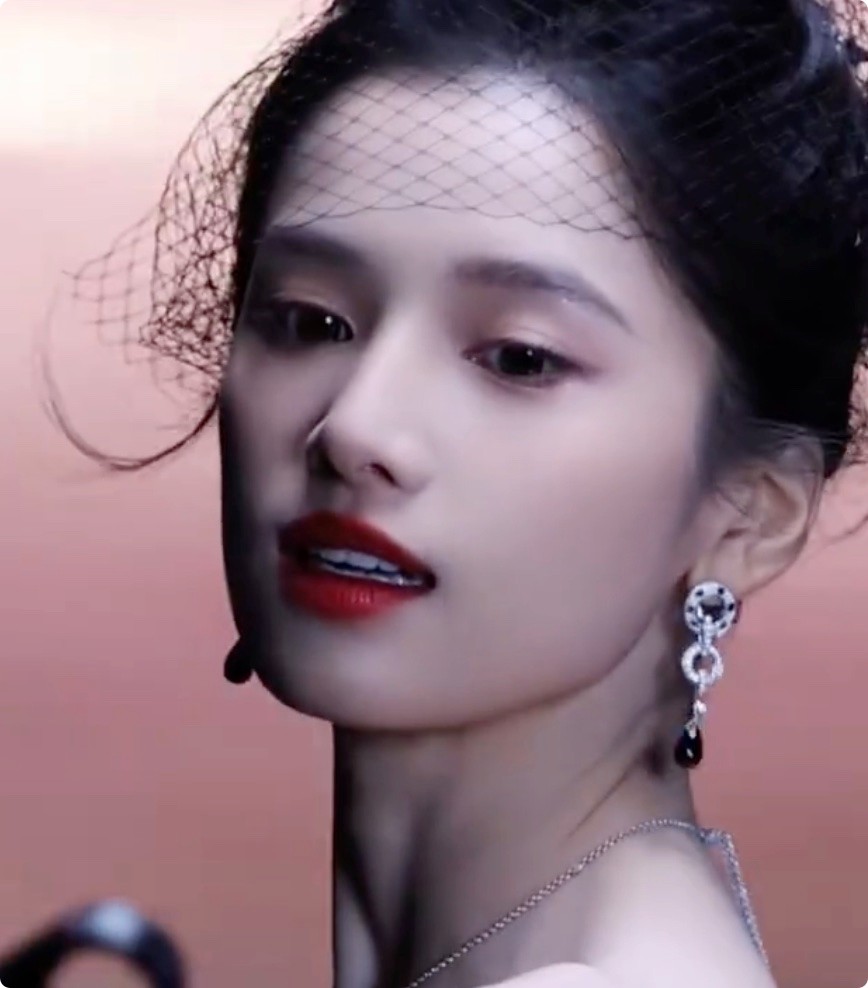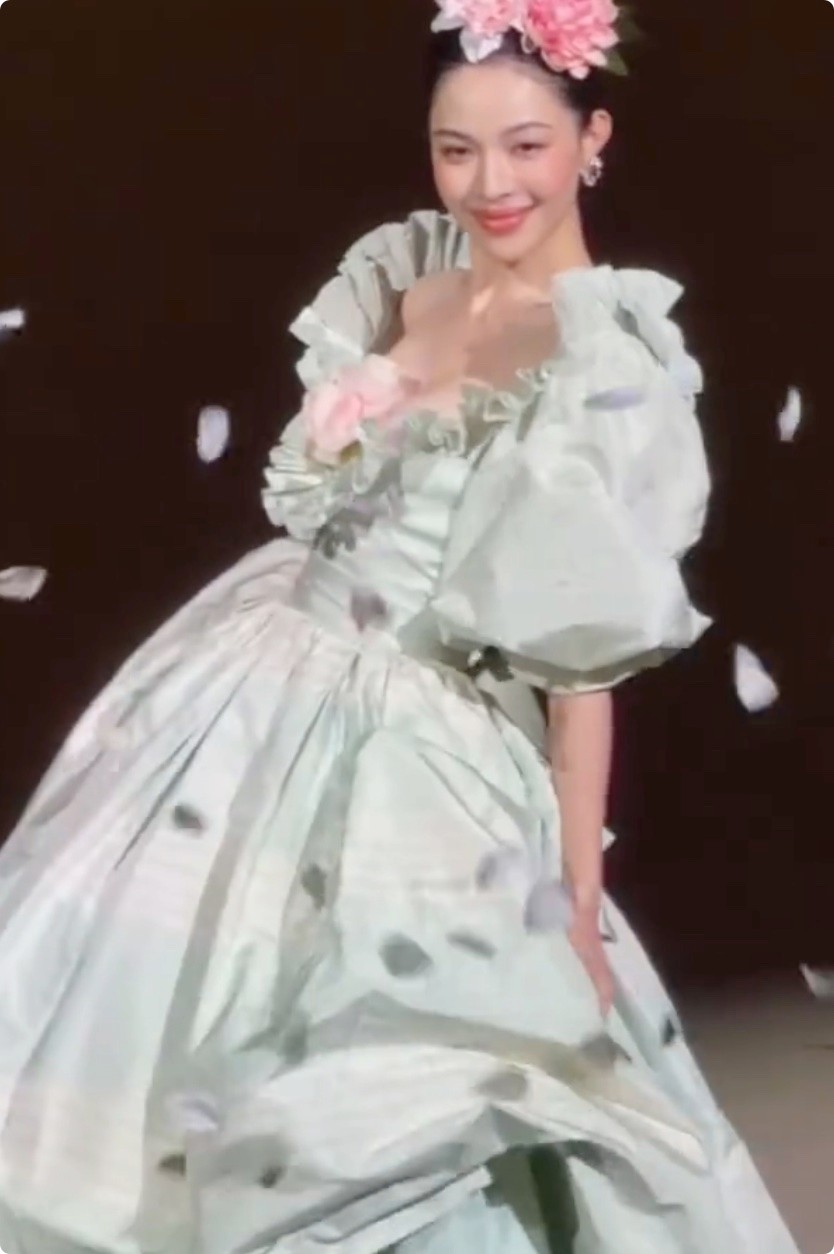 只是脸太瘦了点,显得苹果肌有些塌,但这丝“憔悴感”反而让她更像高定模特。
