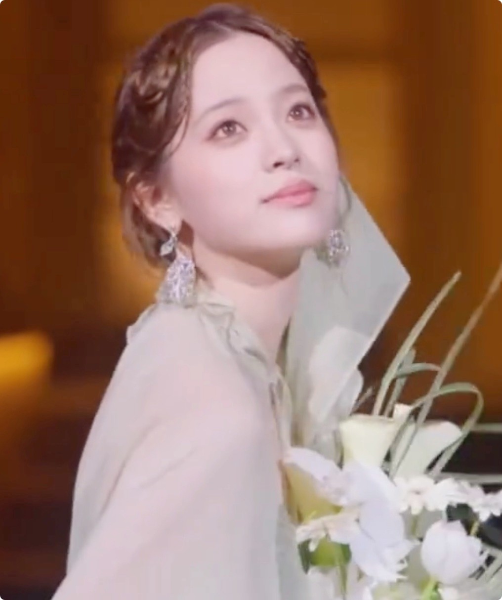 表情灵动,状态轻盈,虽然气场不如几位大花,但作为这场盛典里的“小甜心”,她拿捏得恰到好处。