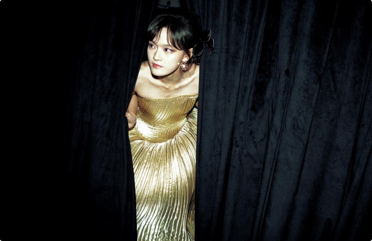 文淇这次造型也算惊喜,鎏金抹胸礼服强调了腰肢线条,裙摆夸张但不喧宾夺主。