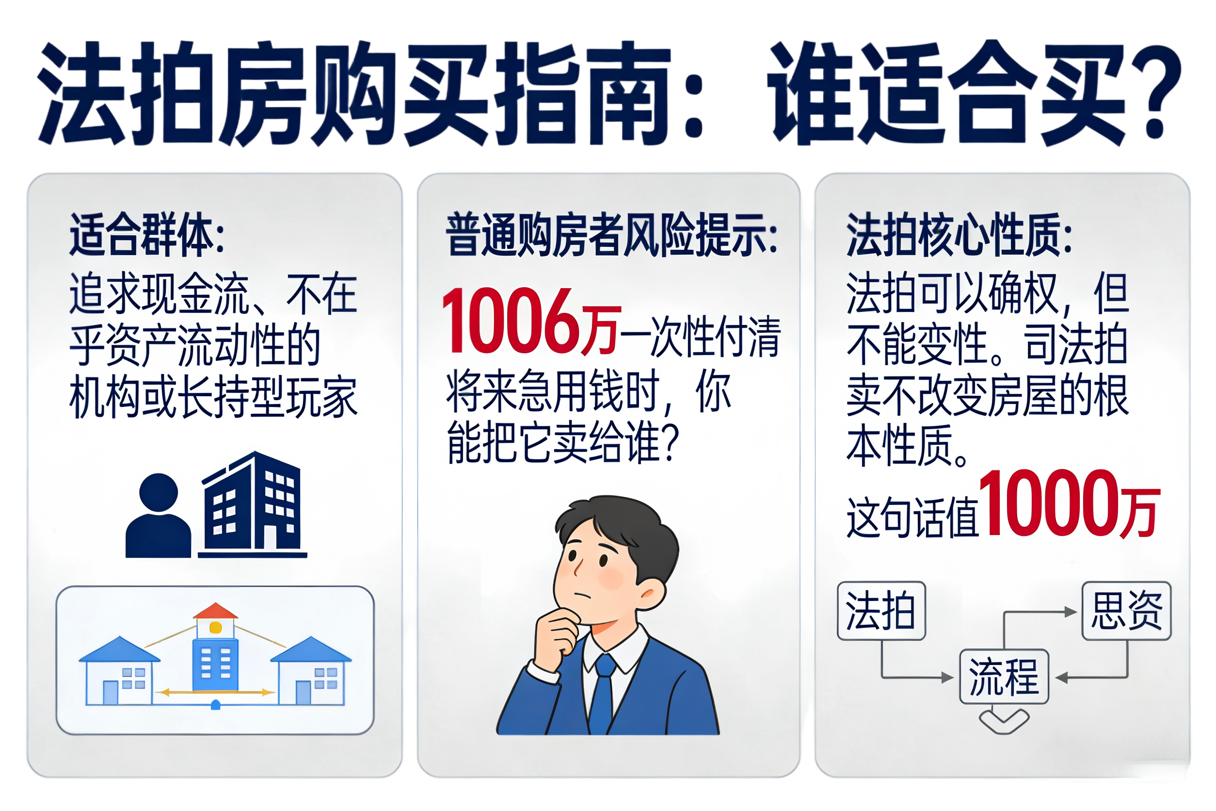 法拍可以确权,但不能变性。司法拍卖不改变房屋的根本性质。这句话值1000万。