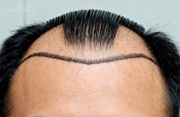 这位小伙是一名程序员,从20岁出头开始掉头发,前额发际线明显后退,为了改善外观,他选择做了植发手术。做完手术的前两年,头发状态还比较理想。可过了三年后,他却再次回到了脱发门诊——植上去的头发依然挺立,但原本的头发却大片脱落,导致头顶中部稀疏,唯独植发区形成一道突兀的“发箍带”。