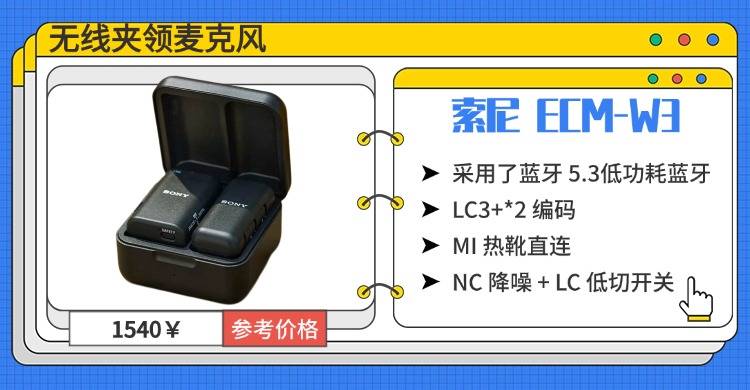 索尼粉丝或追求专业级音质的用户,ECM-W3 会是很合拍的选择。它搭载高信噪比麦克风单元,支持 48kHz/24Bit 数字音频输出,能还原清晰人声,几乎没有明显底噪,音质纯净度拉满。同时还采用了蓝牙 5.3(低功耗蓝牙)和 LC3+*2 编码,兼顾低功耗、低延迟和高音质;NC 降噪 + LC 低切开关,拍摄时不用反复调试;而且支持双声道一拖二收音,加上MI 热靴直连索尼相机无需额外接线,操作便捷;还有3 档可调的音量衰减功能,能应对不同声压场景。