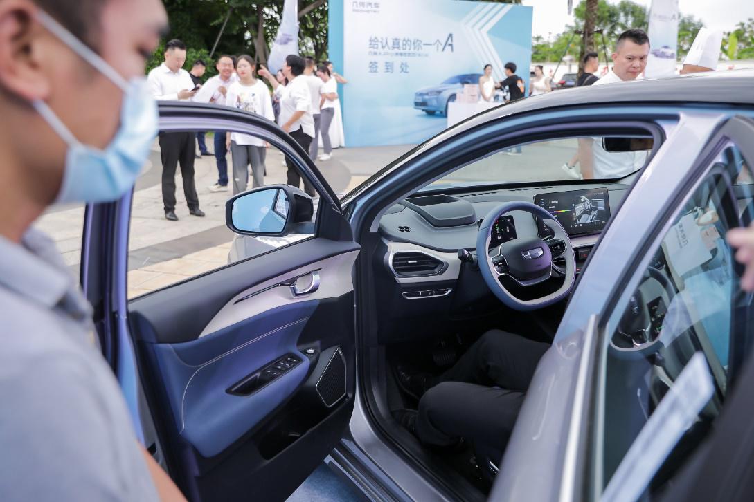 消费者可自由进入车内,通过语音交互的形式,完成空调、车窗、氛围灯等功能的开关。还可以通过几何APro搭载的540°AR底盘透视功能,观察车底信息,完成问答互动,让消费者亲身体会几何APro的黑科技实力。