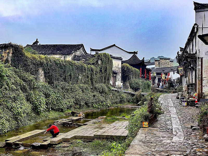 我忽然明白了。查济之所以动人,不在它“活着”的热闹,恰在它“老去”的坦然。它不像一些古镇,硬生生要将自己扮作青春的模样。查济是服老的,它允许墙皮剥落,允许门环生绿,允许青石板路的缝隙里,蔓出青青的草。它将千年的光阴,都收在了这些残缺与斑驳里,酿成一种醇厚而微涩的况味。它是一册被时光浸得微卷的孤本,纸页泛黄,墨迹沉着,安安静静地躺在皖南的青山绿水间。那穿村而过的许溪,便是这书页间永不干涸的、清亮的一条批注,潺潺地,为每一个驻足静听的人,念着那些被风吹雨打去的旧日篇章。