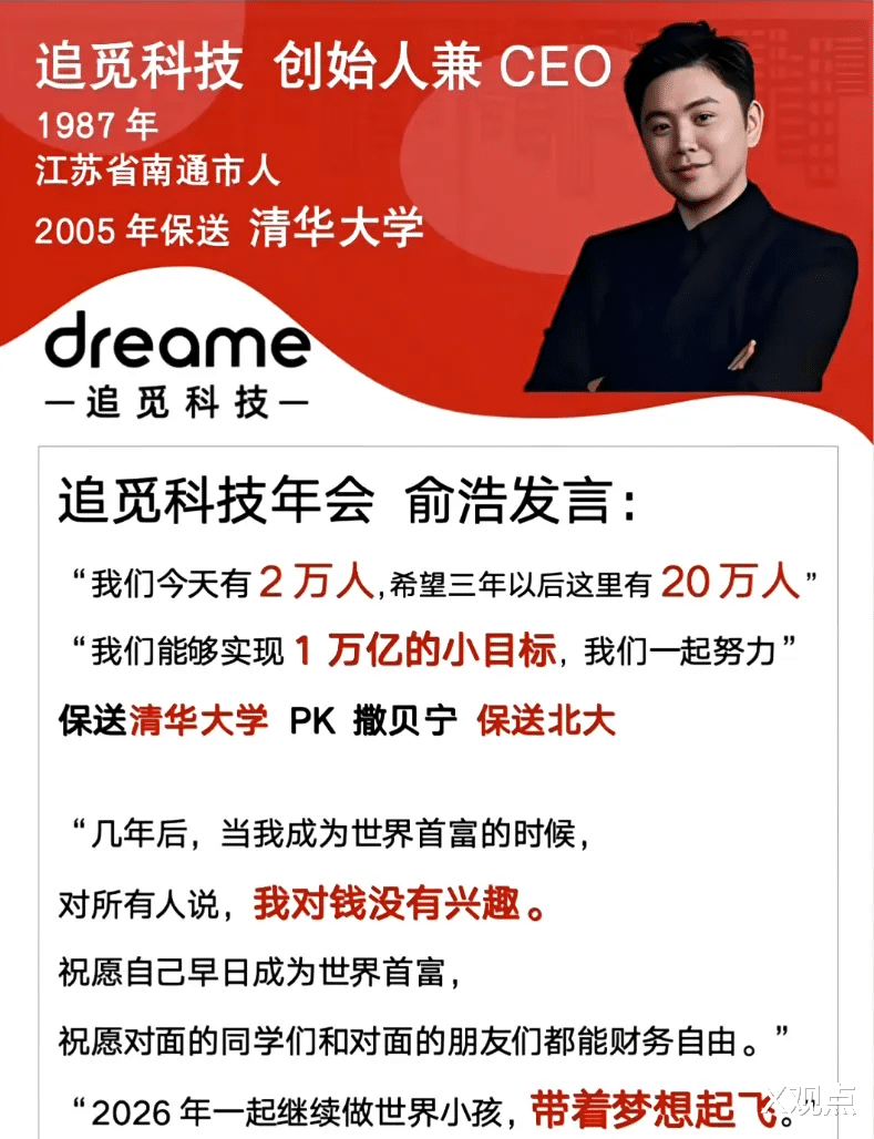 如果三年后,追觅真的有20万人,真的做到了万亿营收,那么今天的这篇文章就是对他的致敬;