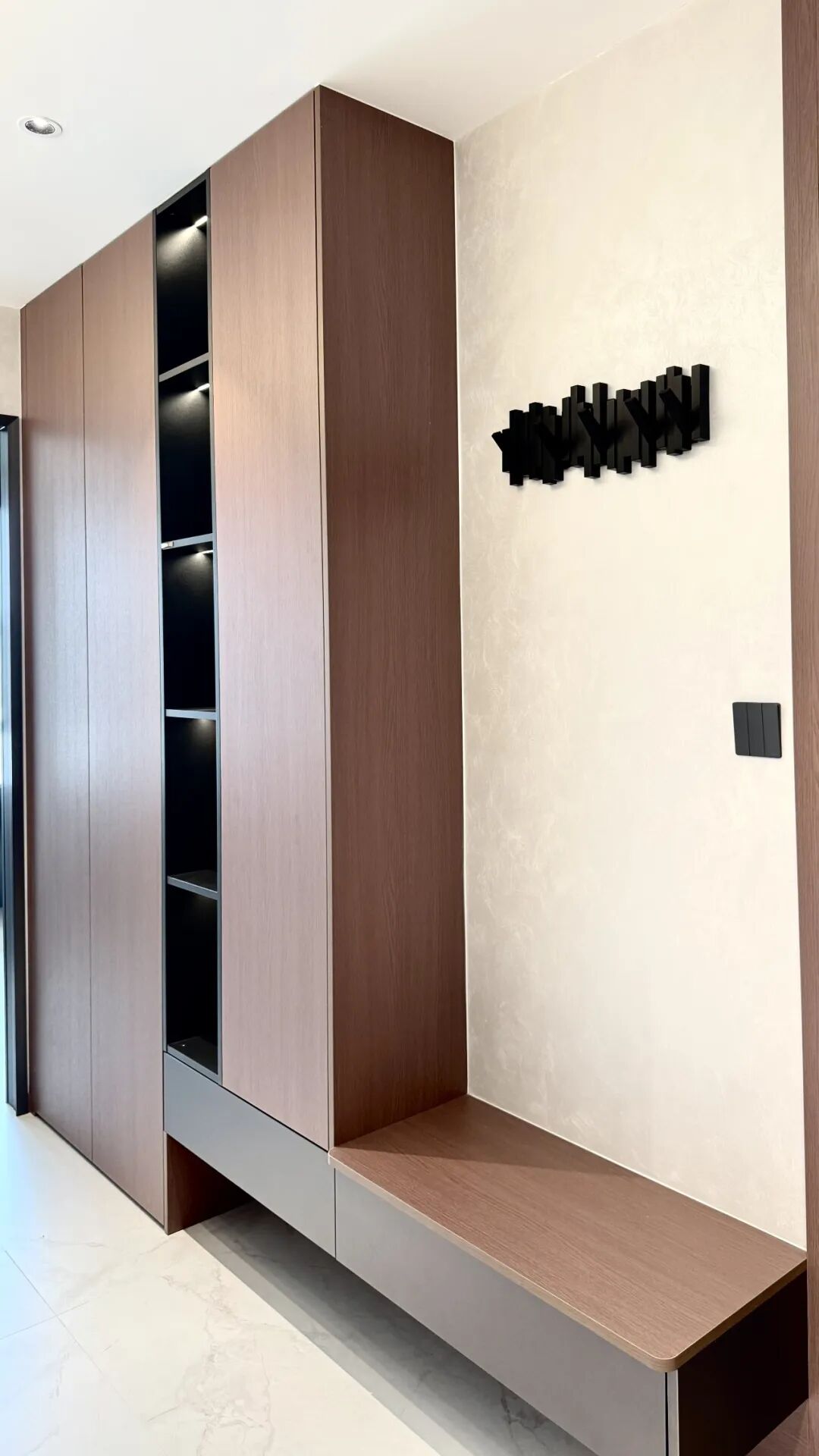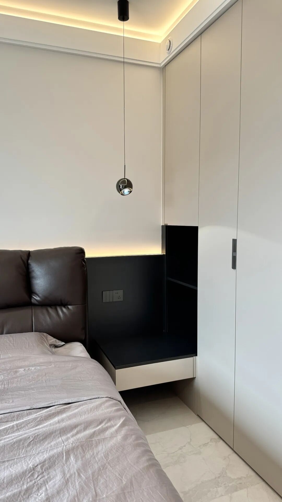 ② 收纳“隐形化”:像主卧的嵌入式收纳、入户柜的分层设计,把杂乱藏起来,空间才会显大又整洁~