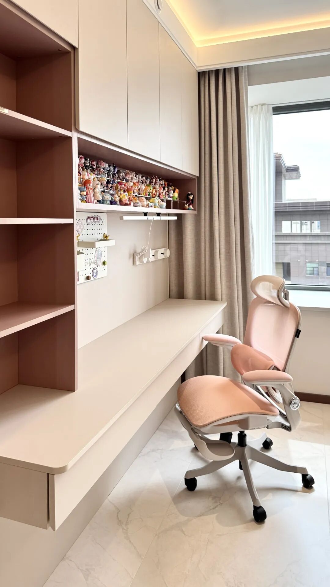 “做德源府这个案子时,我一直在思考“如何让意式极简不止于‘好看’,更能‘好住’”。从客厅的材质搭配,到次卧的童趣收纳,每一处都在平衡“极简美学”和“生活烟火”。看到业主能在这个家里,既享受极简的高级感,又能舒服地睡觉、带娃、迎接每一次归家,我特别满足。希望这个家能陪伴他们,把平凡的日子过成有质感的诗”。