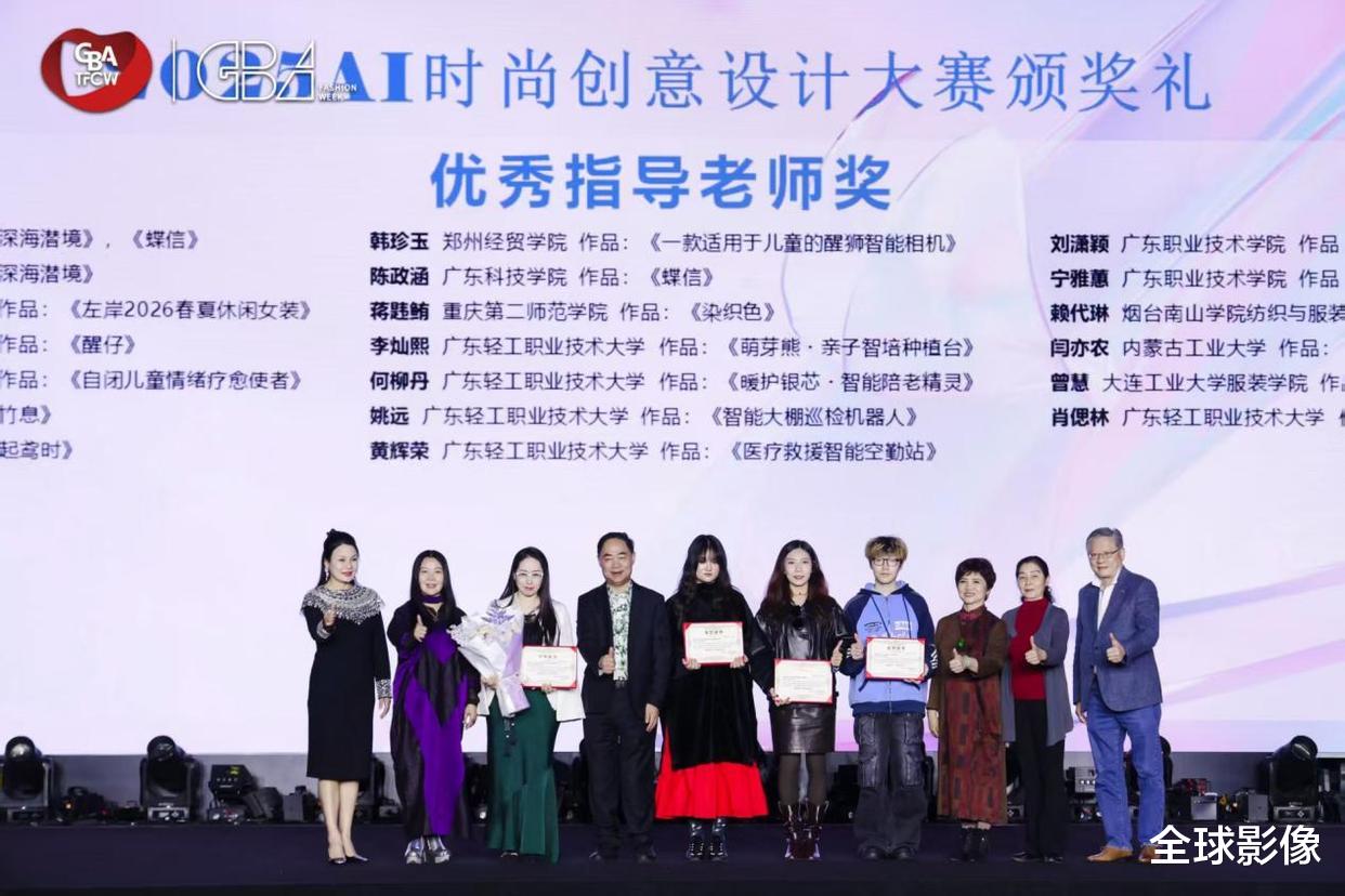 大赛同时表彰了在AI设计教育领域做出突出贡献的指导教师:有广东科技学院吴昀蔓、广东科技学院刘若安、广州西木设计有限公司林姿含、广东轻工职业技术大学罗冬特、广东轻工职业技术大学欧栋生、北京服装学院王传春、武汉纺织大学周卉、郑州经贸学院韩珍玉、广东科技学院陈政涵、重庆第二师范学院蒋韪鲔、广东轻工职业技术大学李灿熙、何柳丹、姚远、黄辉荣、广东职业技术学院刘潇颖宁雅蕙、烟台南山学院纺织与服装学院赖代琳、内蒙古工业大学闫亦农、大连工业大学服装学院 曾慧、广东轻工职业技术大学肖偲林。教师因指导学生创作出优秀作品而获得优秀指导老师奖。