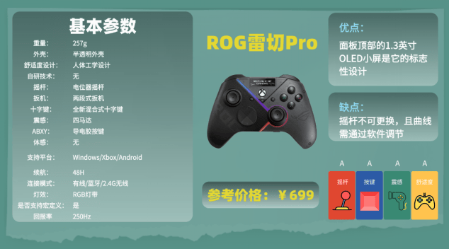 7、华 硕R OG雷切Pro游戏手柄:半透明拼接外壳搭配斜切线条,科技感十足
