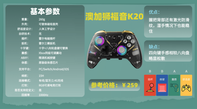 6、澳 加狮福 音K20游戏手柄:透明外壳带磨砂涂层,既有机能感又不易落指纹