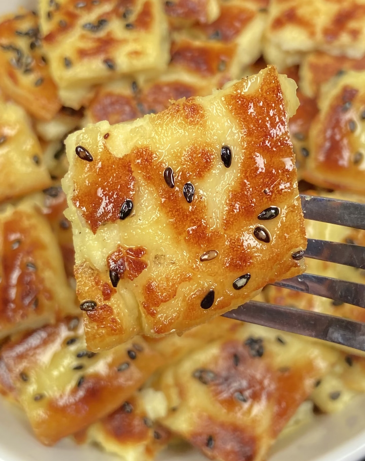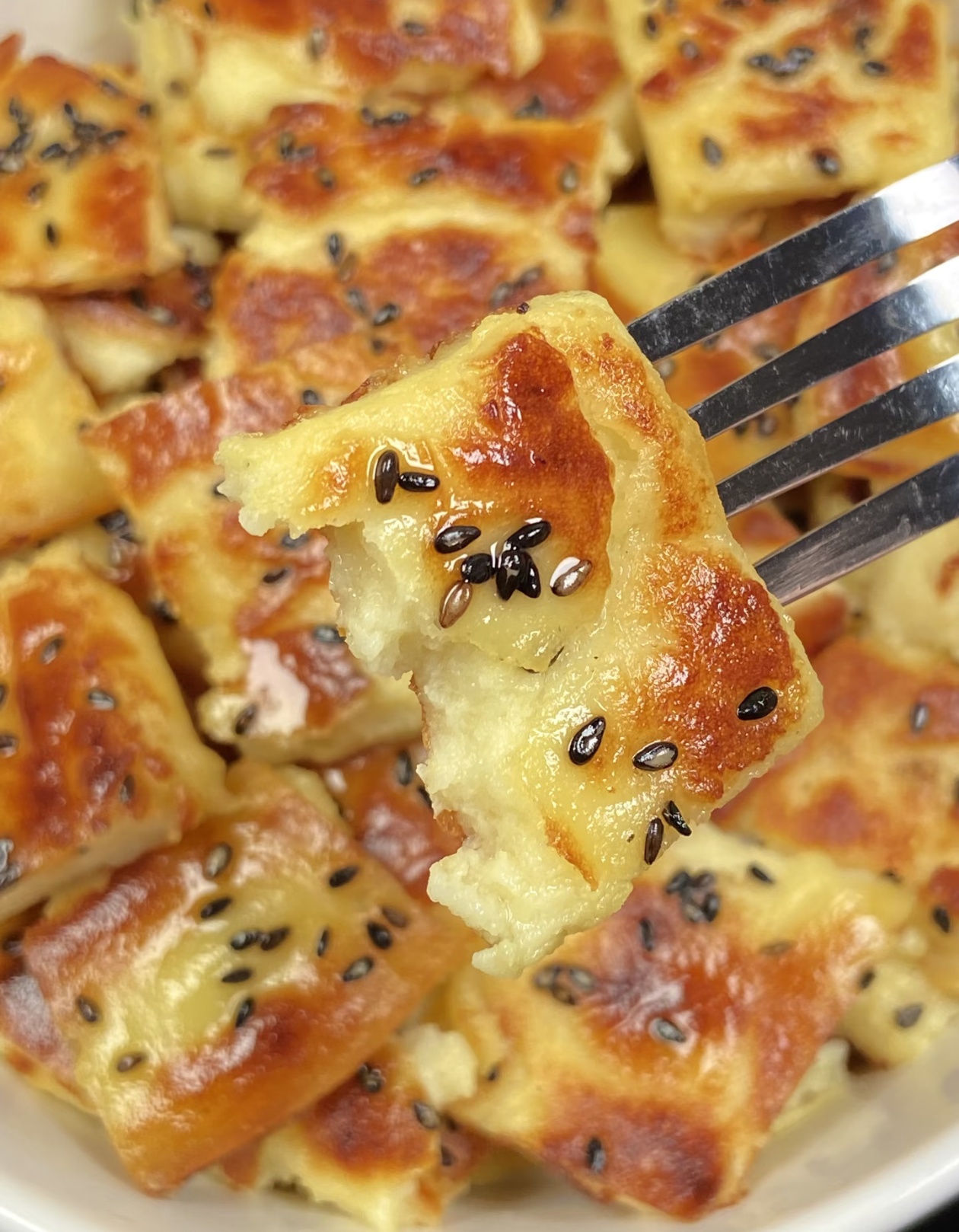 等到一面煎至金黄焦脆,就可以用铲子小心地翻面,继续煎另一面。翻面的时候动作要轻,避免把饼弄碎。两面都煎到金黄酥脆,用筷子戳一下,能感觉到内部已经完全凝固,没有流动的面糊,就可以关火出锅了。把煎好的土豆饼放在案板上,切成大小均匀的小块,装盘后还可以淋上一点蜂蜜或者炼乳,口感会更加丰富。
