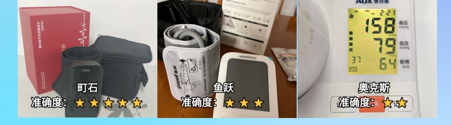 测评结果:町石>鱼跃>奥克斯町石血压计准确度测评表现:町石血压计的准确度表现堪称完美,实测结果稳定且数值精确,整个测量过程流畅自然,几乎没有误差。得益于其先进的双滤波稳定算法和高精度传感器,町石在快速测量中依然能确/保每次结果的一致性和准确性。采用的“无距传感测压技术”显/著缩短了测量时间,同时提升了数据准确性,确/保每次测量都精确无误。简而言之,无论在高压或低压情况下,它的准确度都非常出色,适合日常监测。鱼跃血压计准确度测评表现:鱼跃血压计的表现还算不错,准确度整体上还行,数值稳定性尚可。其采用了较为先进的压力检测技术,测量时能够保持一定的稳定性。然而,在面对多个测量点时,偶尔会出现微小的偏差。对于常规使用,表现还算中规中矩,测量结果基本可以接受。技术方面,鱼跃采用了自动校准系统,确/保了大多数情况下的精确度,不过仍有提升空间,特别是在长时间连续使用时,准确度可能略有下降。奥克斯血压计准确度测评表现:奥克斯血压计的准确度则显得比较普通,整体表现中规中矩。测量结果虽然大致可靠,但与其他两款相比,存在一定的波动性。尤其在测量高压值时,偶尔会出现轻微误差,数值的稳定性稍显不足。奥克斯使用的是传统的传感器和算法,虽然能够满足日常需求,但在准确度和数值的一致性上不如其他品牌。总体来说,它的测量结果可以应付常规需求,但对于追求高精度的用户来说,可能会感到不太满足。