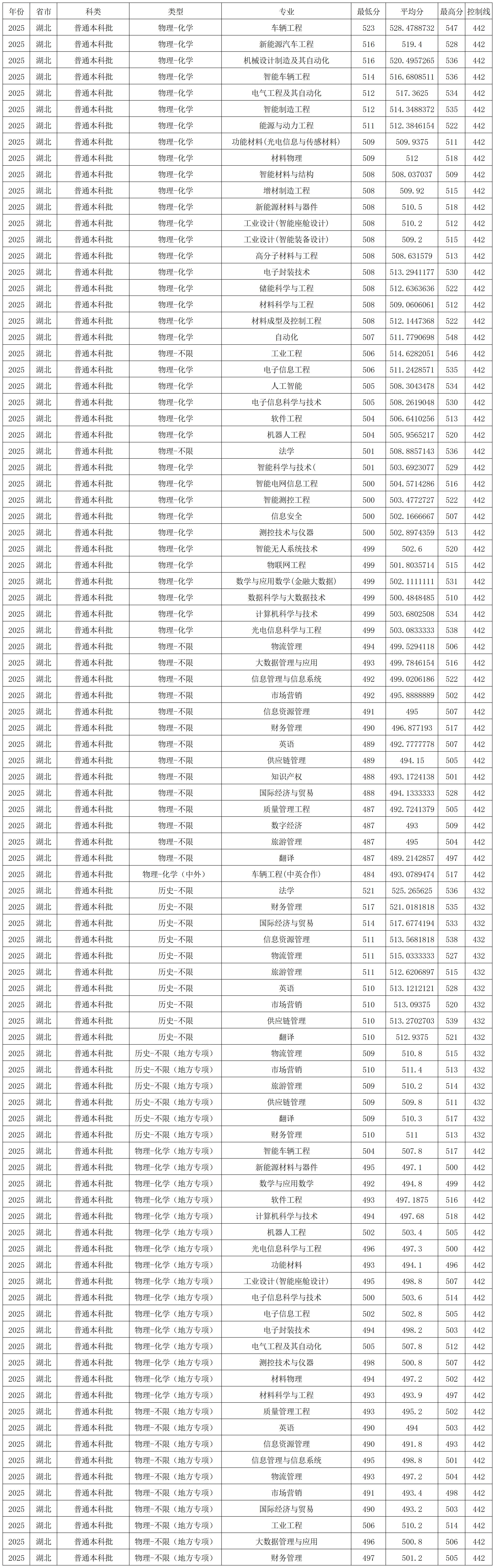 湖北汽车工业学院2025年录取分数线汇总,车辆工程在各省分数较高