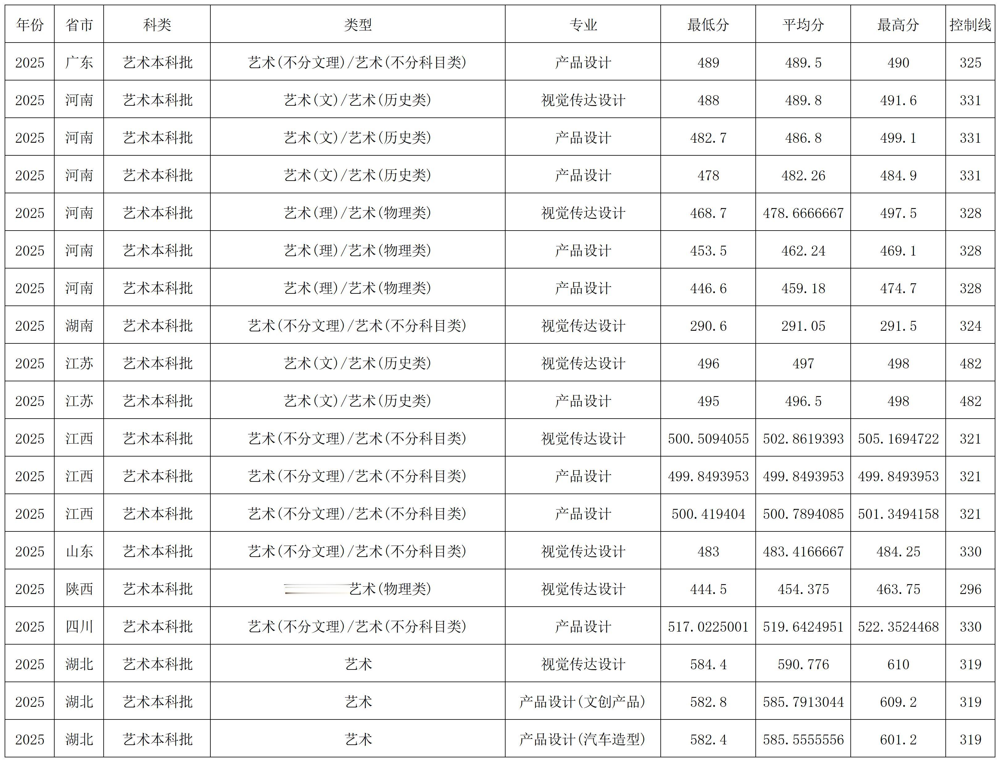 湖北汽车工业学院2025年艺术类在各省各专业录取分数线