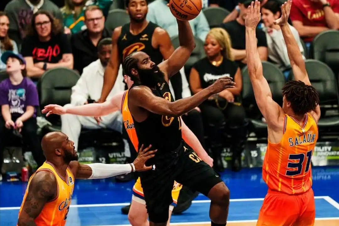 下半场黄蜂一度凭借外线火力反超比分,但哈登与米切尔联手发力,哈登掌控节奏、米切尔突破杀伤,迅速夺回领先权。末节哈登得分助攻一肩挑,先助攻韦德命中一记底角三分,随后自己在45度三分一击致命,然后快攻中造成米勒犯规,完成2次罚球。虽然黄蜂最后时刻连续命中三分,但米切尔罚球很稳,最终骑士顶住压力锁定胜局。