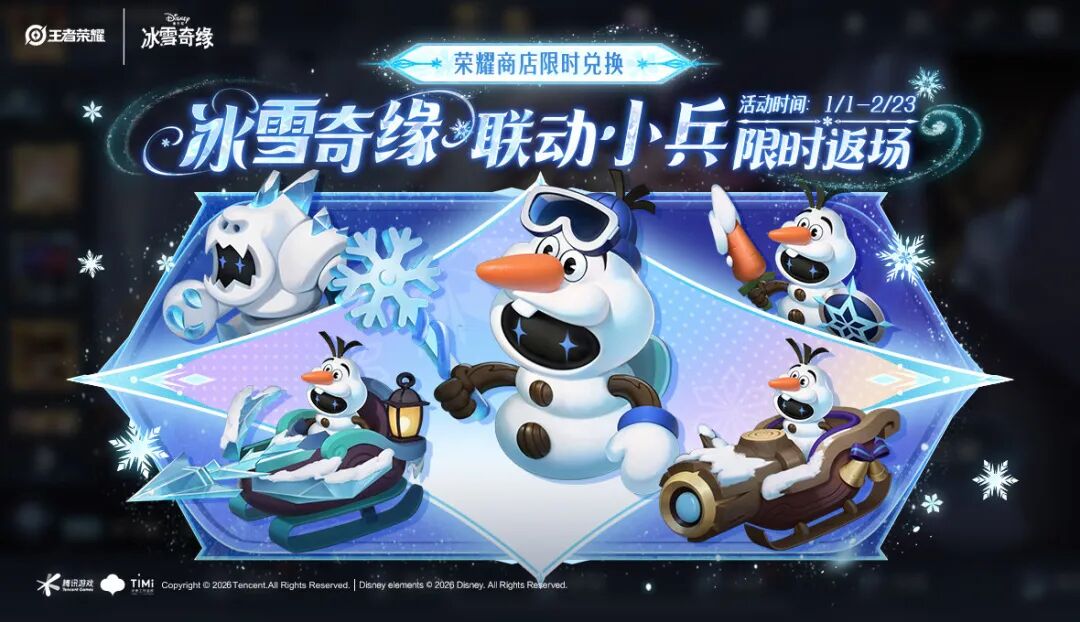 同时,冰雪奇缘的小兵皮肤也将同步返场。时间是1月1日。