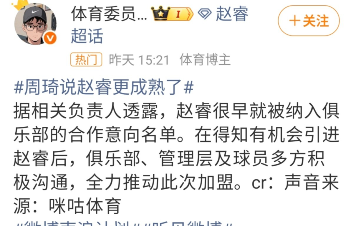从周琦的话中,我们不难看出,首钢俱乐部和首钢管理层早就有签约赵睿意向,并不是一时兴起,更不是一时冲动签约了赵睿,其实早就有签约赵睿的打算了,不然的话,周琦也不会说“不管是俱乐部还是管理层包括球员们都相互有过一些沟通,都希望全力争取到他的加盟。”希望赵睿能帮助到球队。