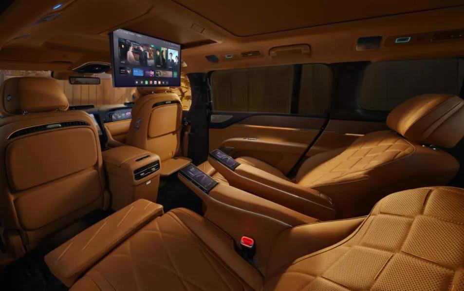 车内5.3立方米宽奢空间,是移动的东方美学画卷。真木饰件、顶级Nappa真皮座椅,工艺精湛。丹拿铂金证据系列32扬声器系统与21.4英寸电动折叠吸顶屏,带来视听盛宴。
