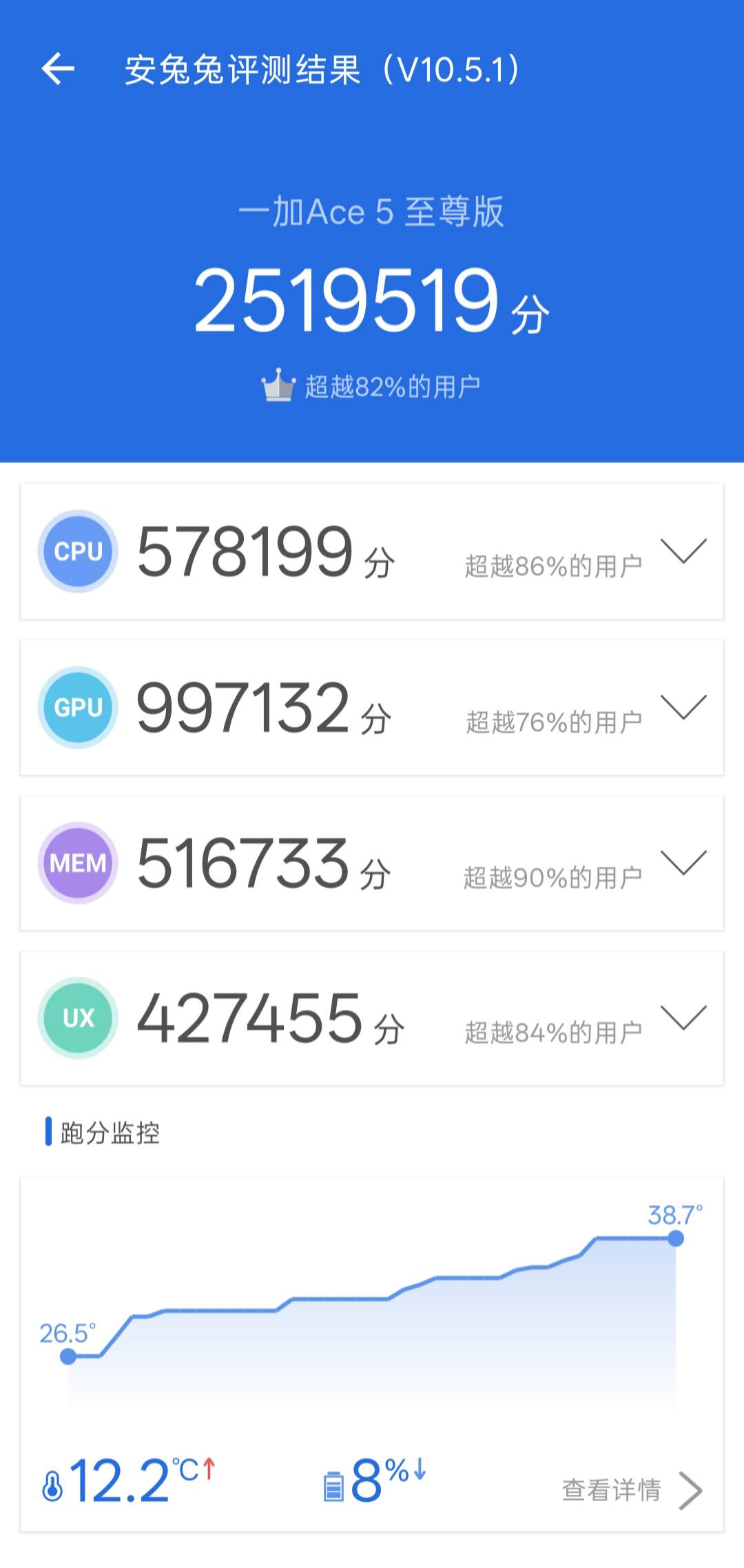 ▲长时间游戏手机发烫怎么办?这下也不用担心,一加Ace5至尊版采用了全新的冰河散热系统(冰河VC+冰河后盖+冰河石墨设计),总散热面积达到了41875mm²,我愿称之为称「移动空调」,其原理就是采用的纳米冰晶冷却液导热效率比传统VC提升2℃,冰河石墨的热导率接近工程极限。在30分钟《原神》测试中,机身温度仅39.3℃。加上冰河后盖的4000mm²散热面积设计,更将握持区域的温度控制在37℃以下,长时间游戏也能保持舒适手感。