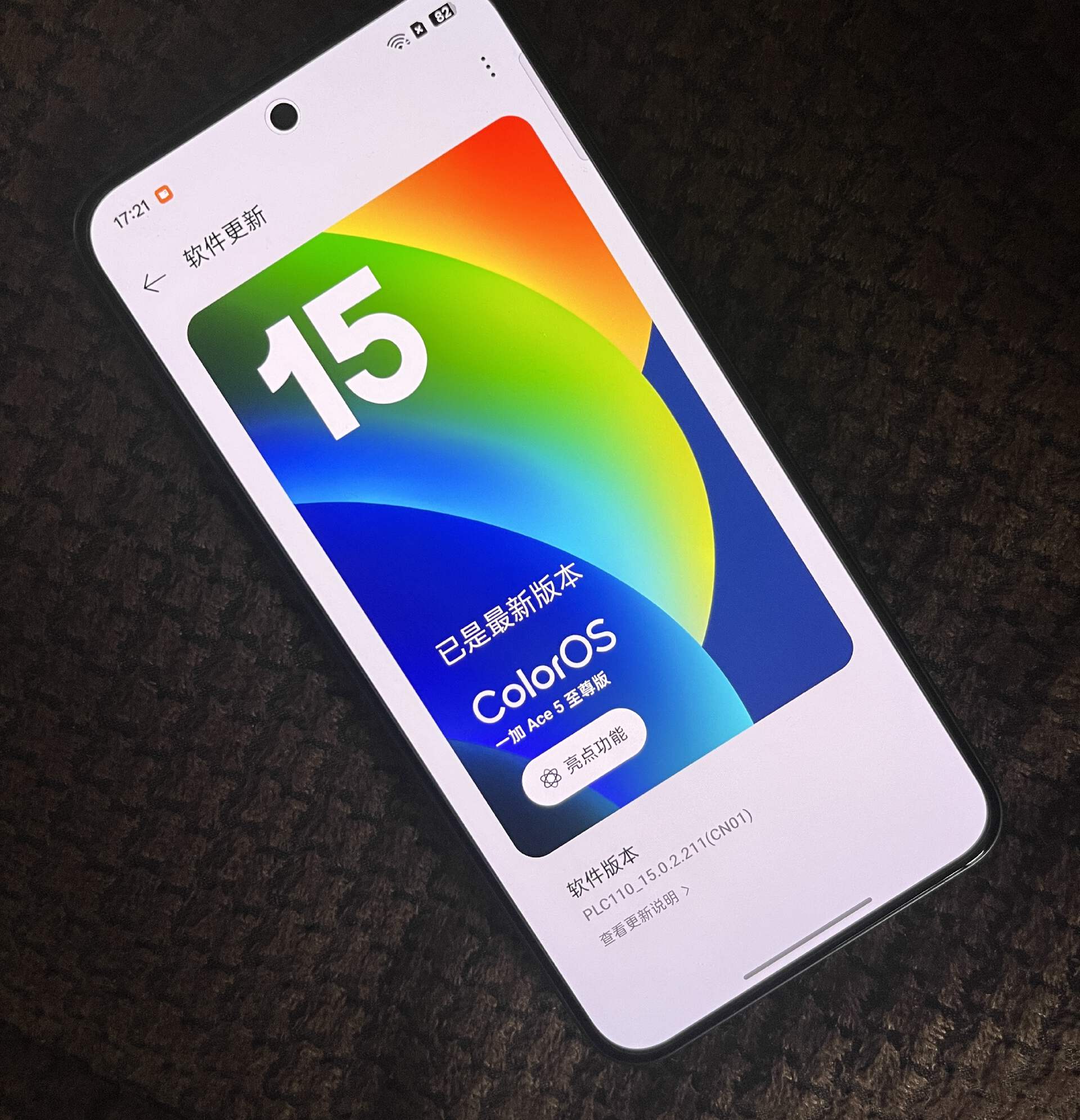 ▲一加 Ace 5 至尊版出厂时就搭载了ColorOS15 系统,在流畅度、稳定性及 AI 功能上进行了全面升级。