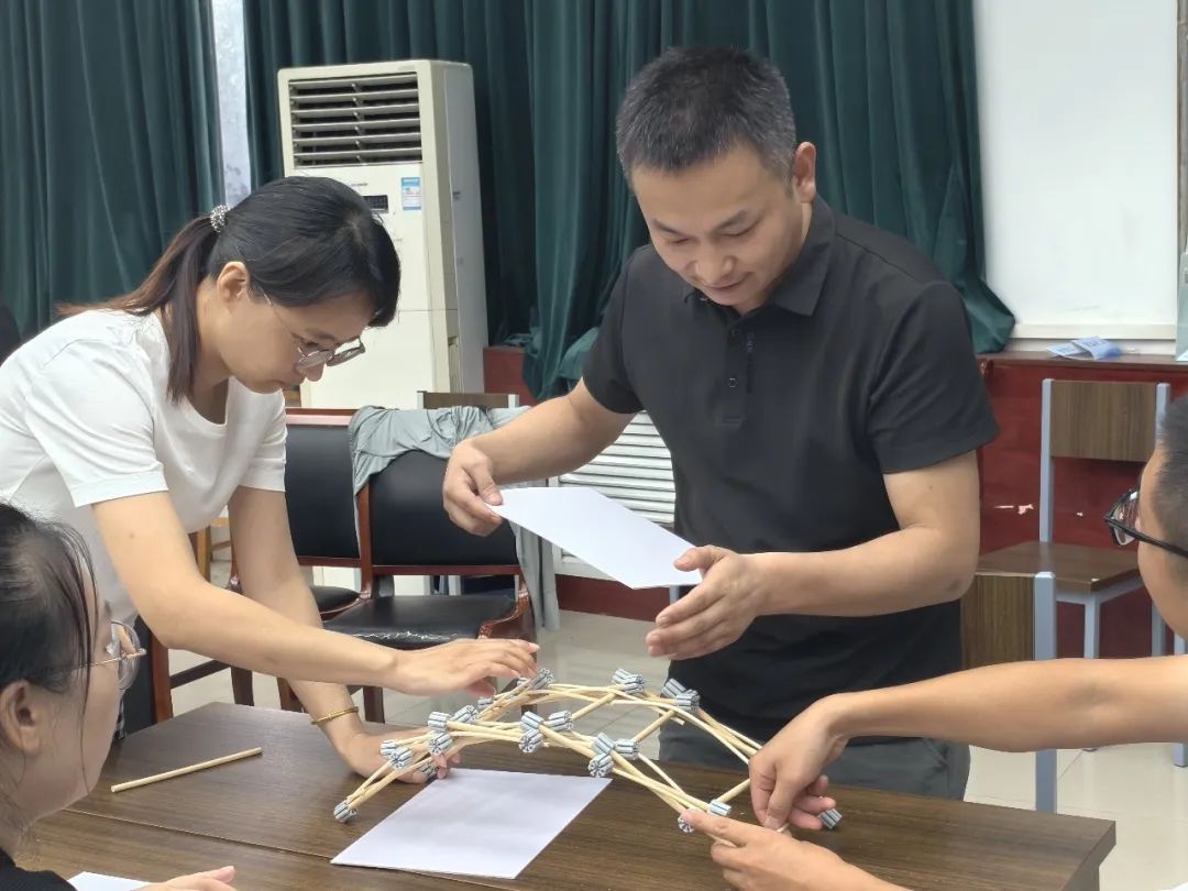 随后,在大诺科教研发总监田中的实践指导下,各组学员根据提供的材料着手搭建一座桥梁,同时要满足跨度、高度、宽度、承重等条件。