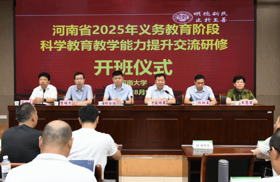 河南大学教育学部始建于1923年,是河南大学建立最早的系科之一。作为河南省基础教育科学教指委主任委员单位,河南大学教育学部牵头成立了河南省中小学科学教育研究中心,是河南省中小学科学教育工作坚定的支持者与实践者。8月9日上午,河南大学副校长苗雨晨,河南省教育厅基础教育处处长胡全胜、副处长杨红星,中国教育科学研究院数字教育研究所所长曹培杰,河南大学教育学部党委常务副书记、基础教育研究院院长蔡建东,项目首席专家、河南省基础教育科学教指委主任委员王慧君出席了开班仪式。