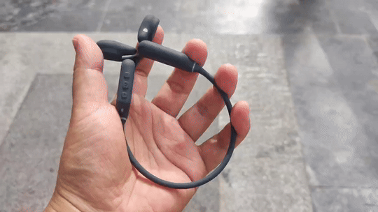 音质增强器和Runner Pro5组合的样式如下图,辅以35°可调双形态灵动设计,可以让用户可以根据自己的头型和耳部结构进行个性化调整,确保佩戴稳定不易滑落。