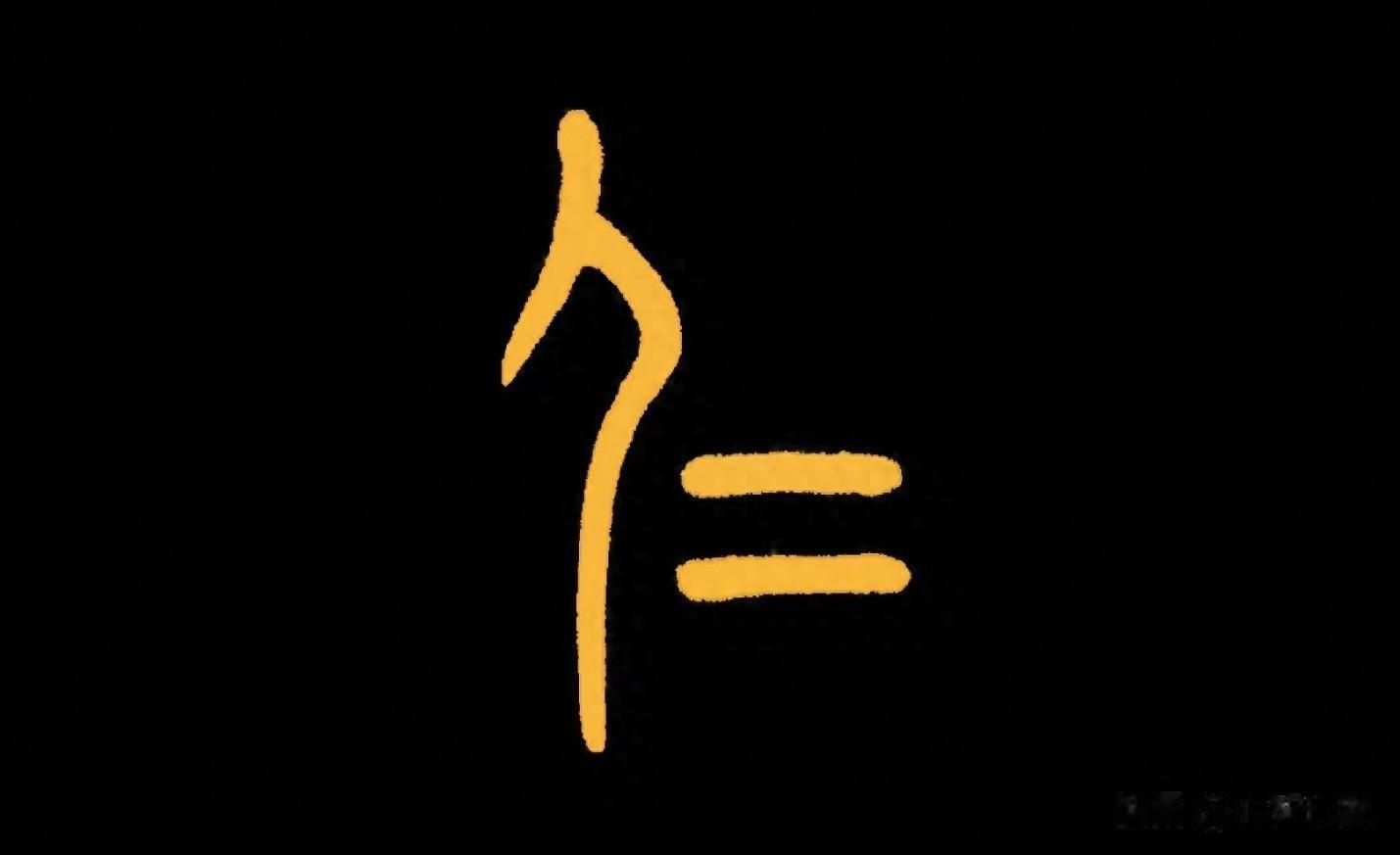 甲骨文“仁”字的右半部分,是个“=”字符,这个字符处在整个“仁”字的右下部分。