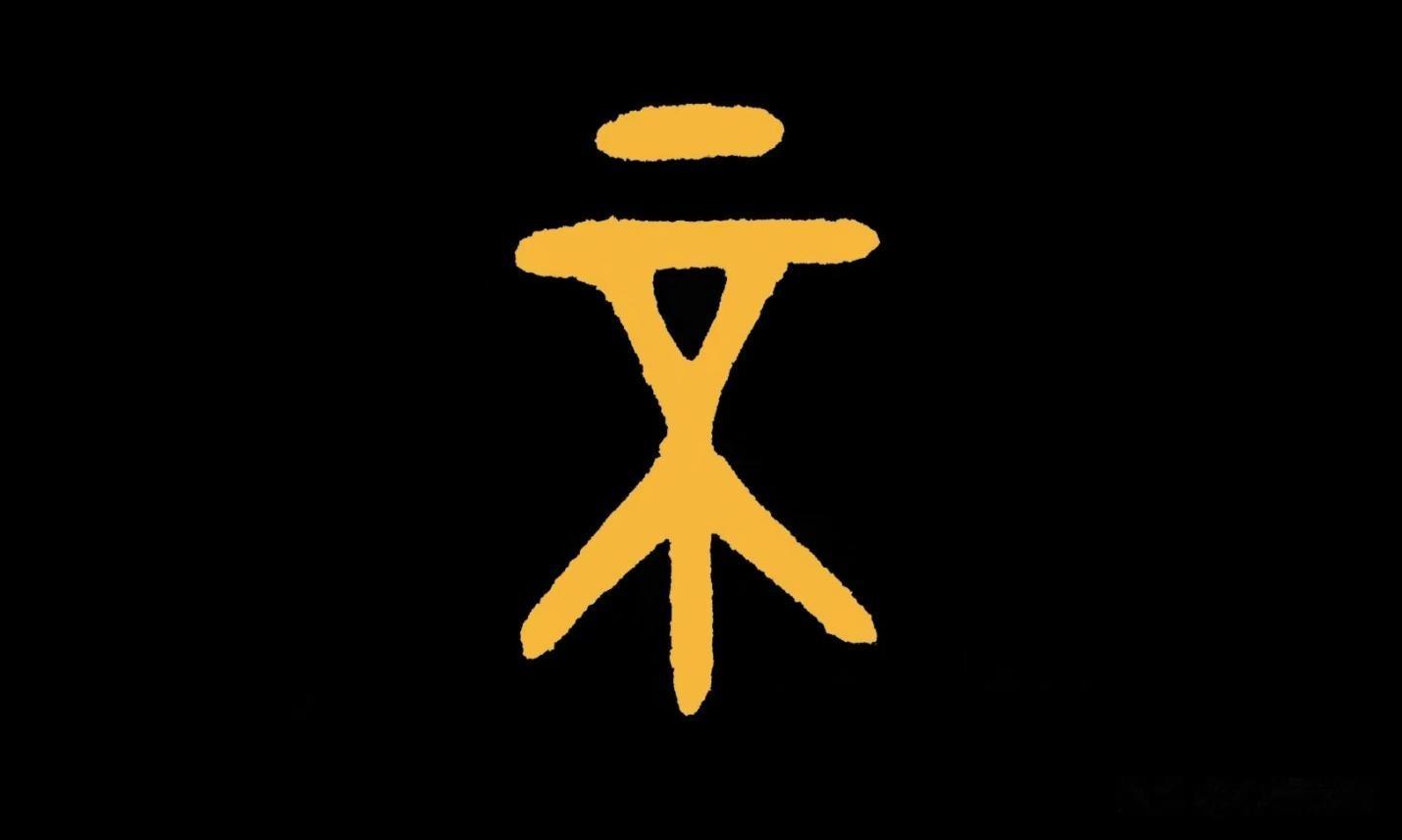 下半部分是个上下颠倒的“大”字,“大”字是人的正面图示,在“本源字义”中是向上的意思,现在上下颠倒以后,就用来表示向下的含义。