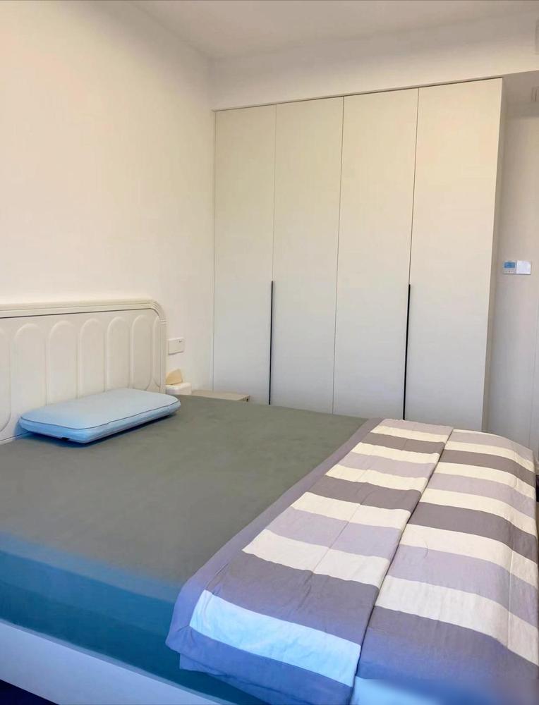 卧室更绝,一张床,一个衣柜,一张书桌。功能齐全,但毫无冗余。到顶衣柜收纳力强,白色也显空间大。但中年人都知道,衣服被子越来越多,衣柜再大也怕不够装。能保持这样,断舍离的功力不是一般的深。