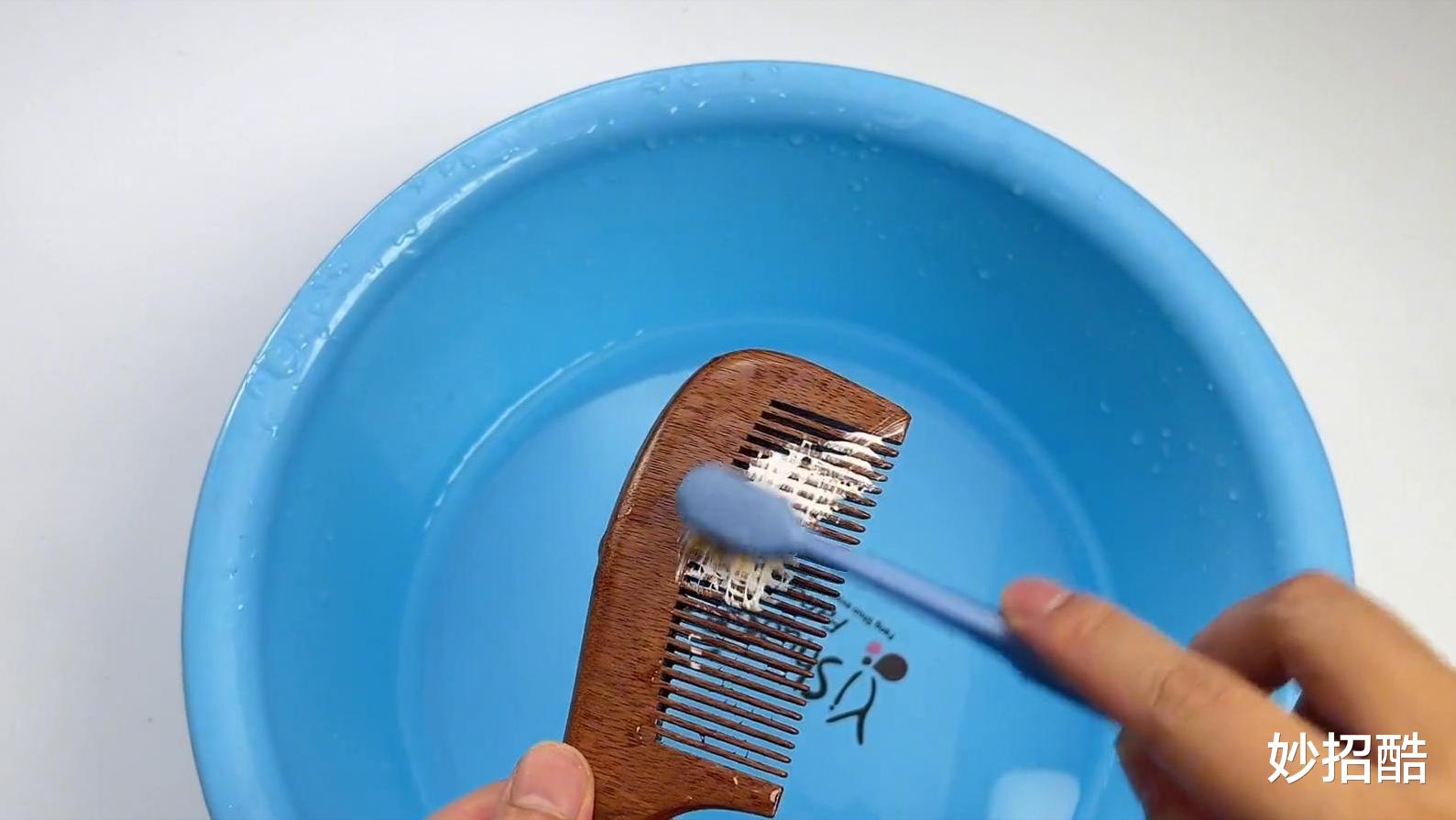 刷完后用清水冲干净,梳子就能干净如新,而且一点异味都没有。