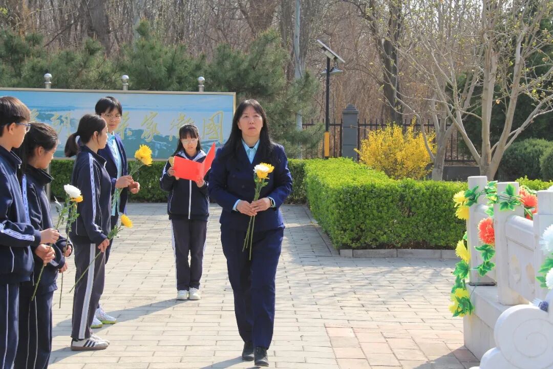 朵朵白花寄托着对革命先烈的深切哀思,全体师生向烈士纪念碑行三鞠躬礼,以最崇高的敬意,缅怀那些为和平与正义献出生命的英雄们。