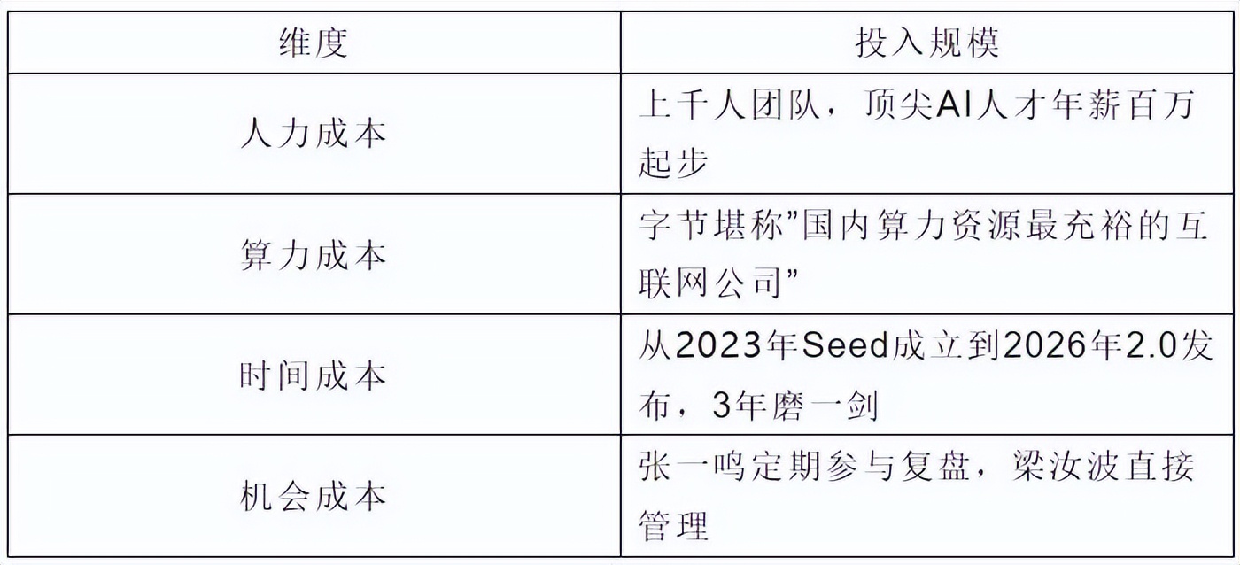 字节到底投了多少?外界没有精确数字,但行业粗略估算,Seed 团队一年的运营成本,至少是几十亿人民币级别。